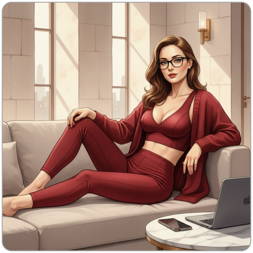 I’ve spent most of today unmoving. Not inactive – there is a meaningful distinction – but deliberately still. The kind of stillness that only arrives when every external pressure has been attended to and what remains is a morning, an afternoon, an evening stretching ahead with nothing required of me. I’m in yogawear. Not the sort you’d find in a chain retailer, but the kind that costs what most people spend on formal occasions – technical fabric that moulds precisely, a crop top and leggings that fit like architecture, an oversized cardigan layered over it all in the same expensive shade. The effect is effortless in the way that only deliberate luxury can be effortless. This is wealth dressed as ease. This is what comfort looks like when it’s been earned through other people’s labour, other people’s devotion, other people’s money moving steadily and obediently into my accounts while I do nothing more strenuous than exist.